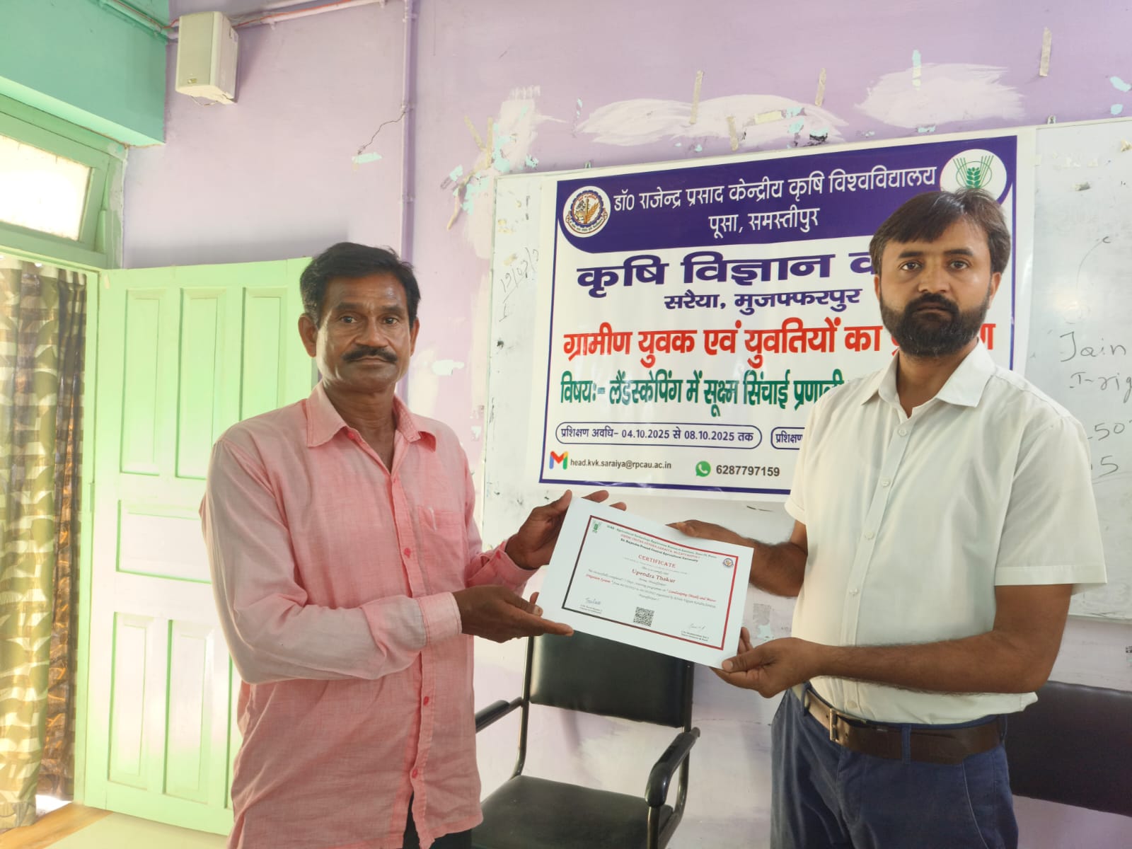 A five-day training programme (4 to 8 Oct 2025) was successfully conducted at Krishi Vigyan Kendra, Saraiya, Muzaffarpur from 4th October to 8th October 2025.